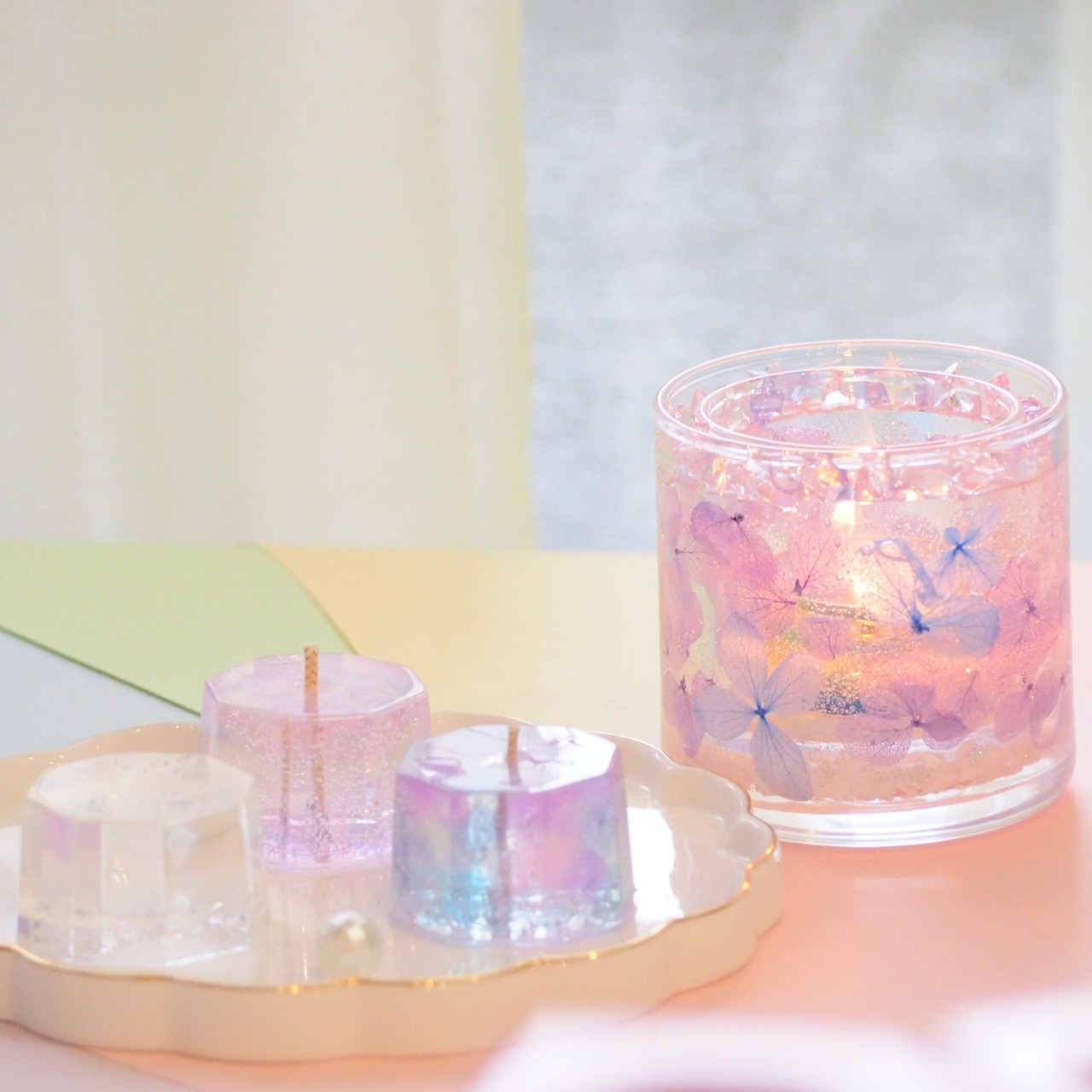 そんな中、趣味のハンドメイドイベント巡りで2024年7月頃Creemaのハンドメイドイベントに行きました。イベントのパンフレットでピックアップされていた、透明のキャンドル(ジェルキャンドル)を知り、キャンドルを作ってみたいと思うように。