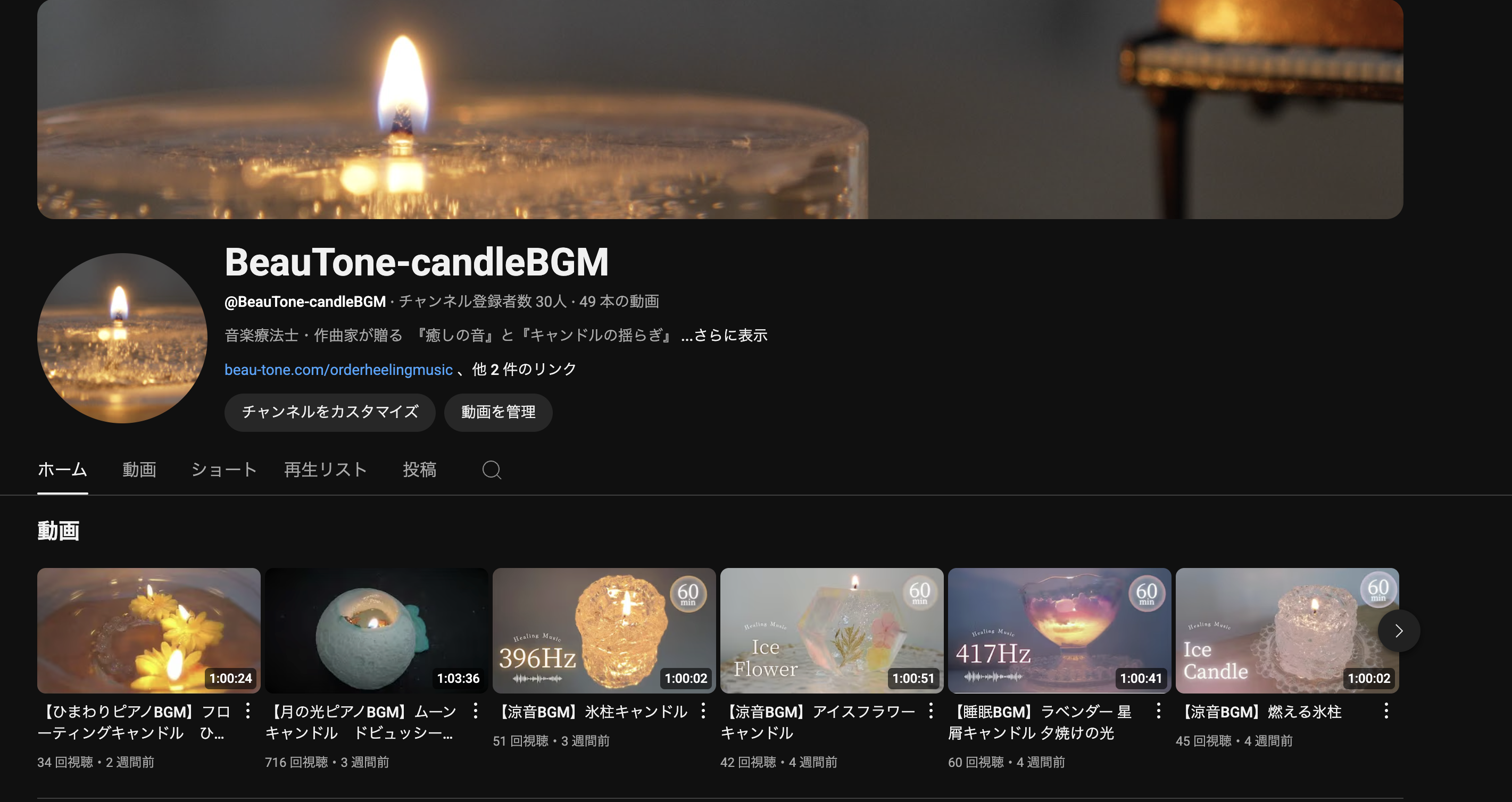 せっかくなので、大好きなキャンドルの映像と、自作の曲orピアノ演奏を掛け合わせた癒しに特化したチャンネルコンセプトにしました。